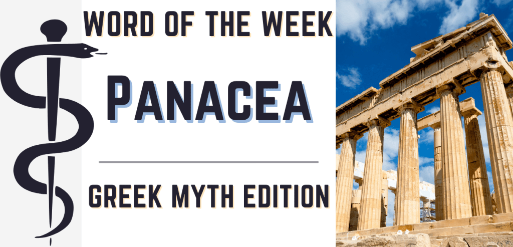Panacea is a noun and is defined as a remedy for all ills or difficulties. Panacea is one of the many words in the English language that has its roots in Greek mythology. In this case, the word panacea derives from the Greek goddess of universal remedy Panacea. Panacea was one of the sisters of Hygieia, the god of cleanliness, and one of the daughters of Asclepius, the Greek god of medicine.