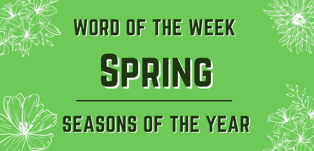 The word spring is a noun and is defined as the season between winter and summer comprising (in the northern hemisphere) of the months of March, April, and May or astronomically extending from the March equinox to the June solstice. First used before the 12th century, the word spring derives from the Old English word “spring,” perhaps referring to the increase in growth of plants and trees during this season.