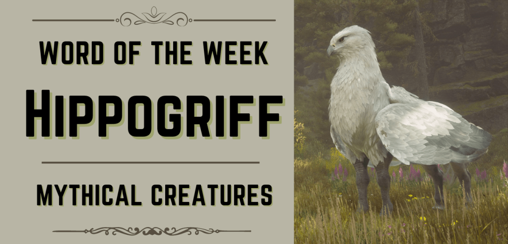Hippogriff is a noun and defined as a legendary animal having the foreparts of a griffin and the body of a horse. The term hippogriff derives from the Ancient Greek word híppos meaning “horse” and the Latin word gryphus meaning “griffin.” The first known use of the term hippogriff was in 1612 by Ludovico Ariosto in his Italian epic poem Orlando Furioso. By 1615, the term was popular among English language speakers.